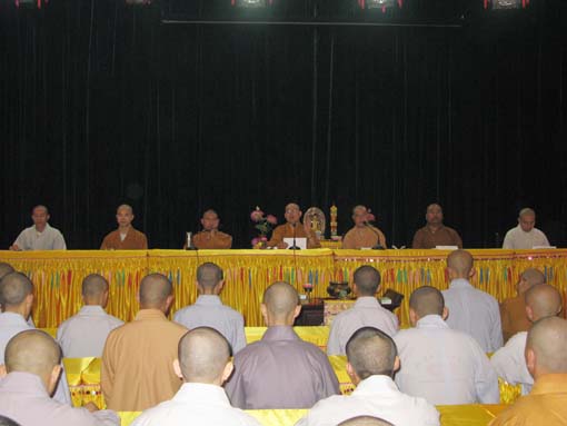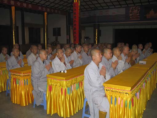 2008年9月2日晚8时,法门寺佛学院全体师生在法堂举行了学期开学典礼,本次典礼由训导长中道法师主持,首先由教务长贤空法师对上学期工作的总结及对本学期教学工作的安排,同时勉励大家今天的学习环境来之不易,请珍惜在这学习的机缘,认真学习修行。随后对上学期的优秀同学给予奖励,希望大家向他们学习、福慧双增。