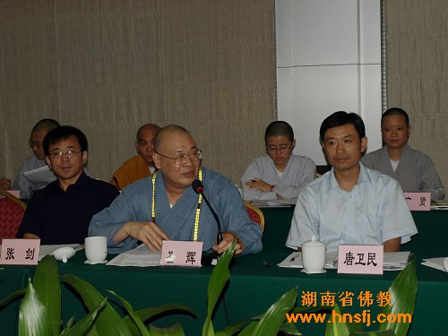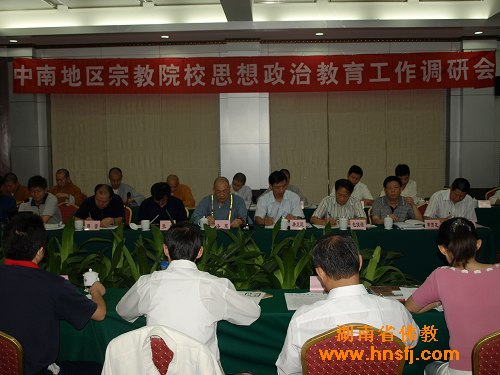 上午,中南地区宗教工作部门的有关负责人,都按本省对宗教院校开展的工作做了汇报。圣辉大和尚就湖南佛学院思想政治课程的开设和如何做好湖南佛学院学生思想教育的问题做了发言。教务长辉振法师介绍了湖南佛学院的概况。湖北武当山道教学院李光富院长及广东协和神学院陈逸鲁院长都一一发言。