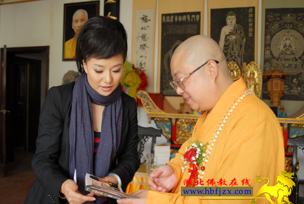 9月28日上午,受邀前来参加“中国?黄石第五届东方山庙会”的总政歌舞团青年独唱演员王丽达女士拜访了省佛协会长、东方山弘化禅寺方丈正慈大和尚。