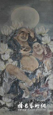 据悉,画家海日汗是位虔诚的佛教徒。从罗汉系列就可以看出,画家画出了宗教艺术特有的祥和超凡气息,得益于海日汗自身对佛教的信仰。