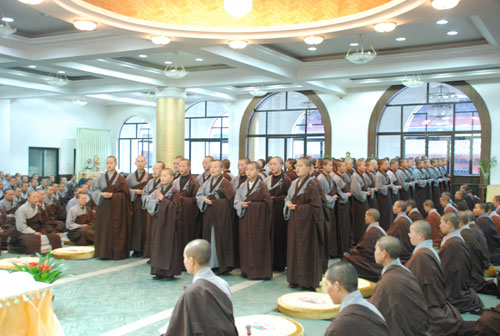 24日下午四点,在师父们的精心安排下,两处佛教圣地佛学院的学僧,在普寿寺的法堂里举行了丰富多彩的联谊活动。首先由普寿寺当家师隆严法师发表了热情洋溢的讲话,句句真情无不表达着对普陀山参访团一行的热烈欢迎。随后,普陀山当家师兼参访团团长华智法师答致谢辞,恳切之语表达了对师父及常住的感恩之心。在欢快而又轻松的气氛中,双方的法师代表都畅所欲言地发表了讲话,学生们也感触颇多的谈了自已的体会。