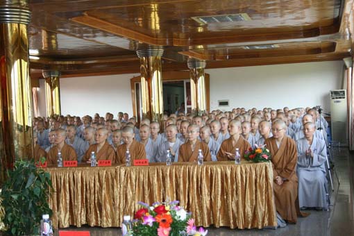 上午九时,开学典礼在雄壮的国歌声中拉开序幕。男众部教务长振宇法师、女众部教务长传绍法师分别在开学典礼上作招生工作报告。振宇法师在发言中勉励学僧们应“认真学习,勇于承担,关怀人间,服务社会,爱国爱教,与时俱进”。