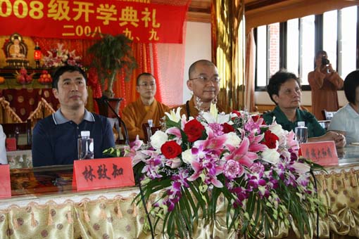 福建省民族与宗教事务厅林致知副厅长到会祝贺并讲话,他勉励学僧们应珍惜因缘、珍惜环境,刻苦努力学习,要做到修学一体化、责任内在化、素质形象化,努力把自己培养成为优秀僧才,为构建和谐宗教、和谐社会服务!