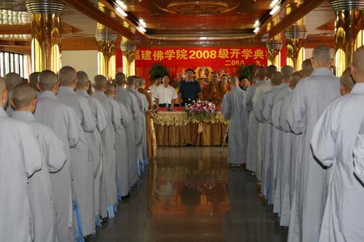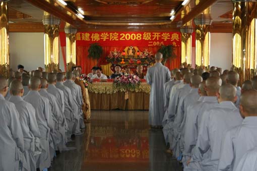九月九日,福建莆田市南山广化寺内洋溢着喜庆祥和的气氛,在这秋风爽丹桂飘香的日子,福建佛学院迎来了2008级新生开学典礼。