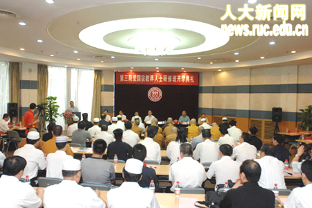 2008年9月3日,“第三期爱国宗教界人士研修班”在中国人民大学逸夫会堂第二会议室举行开学典礼。中共中央统战部常务副部长朱维群、国家宗教事务局副局长蒋坚永、教育部高教司副司长石鹏建、中国人民大学校长纪宝成在会上致辞。