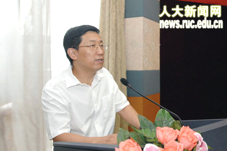 纪宝成校长代表人民大学向爱国宗教界人士研修班全体学员表示热烈的欢迎,向出席研修班开学典礼的中央统战部、国家宗教事务局、教育部的领导表示衷心的感谢,并希望学校各部门认真负责、密切配合,尽力为研修班学员创造一个良好的学习和生活环境,把研修班办好。