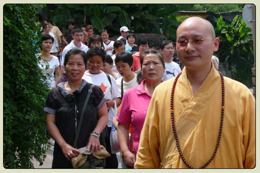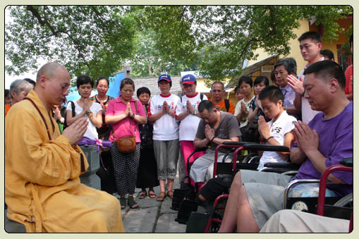 上传下喜法师专程来杭州慰问汶川地震中即将痊愈返回家园的伤者