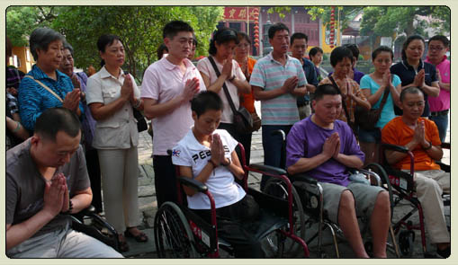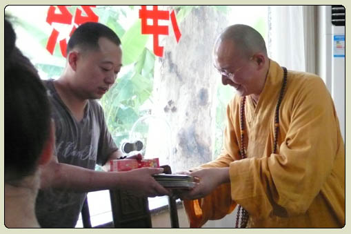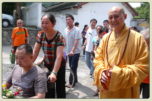宁波慧日寺住持传喜法师慰问汶川地震中即将痊愈的伤者