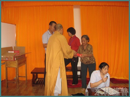 ![]() 志愿者带领老人一起念佛 |