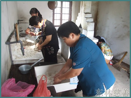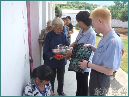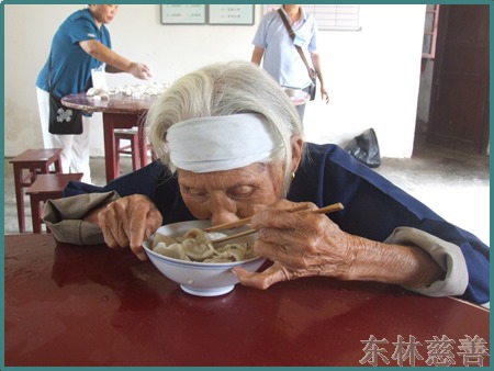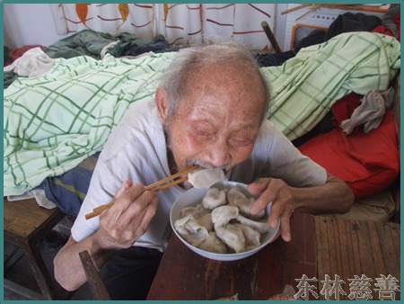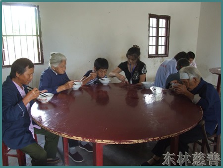 这次中秋慰问活动,东林慈善志愿者对于那些长期卧床,行走不便的困难户,还挨家挨户地走访慰问,给她们送去了月饼和慰问金,希望他们在中秋节家家团圆的时候因为有东林慈善人的帮助,也能过个快快乐乐圆圆满满的中秋节。在镜义法师的慈悲带领下,东林慈善人还到了寒阳镇敬老院慰问老人,给老人送去了牙膏、毛巾等生活必须品,并与她们同吃中秋团圆饭。老有所养,老有所靠,每个人都要经历黑发变白发的过程,关心、孝敬老人的就是孝敬我们自己。众生欢喜,佛欢喜,他们的快乐也我们的快乐。