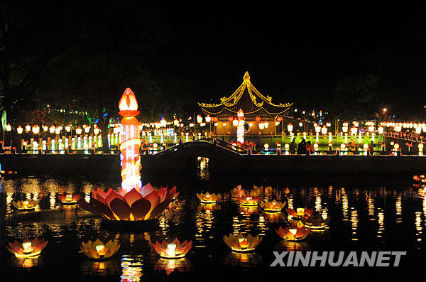 当日,佛教名山浙江普陀山举行“心灯·心愿”佛灯艺术展,千余盏体现传统佛教文化艺术的彩灯点亮海岛,通过灯光、音乐营造出普陀山“海天佛国、琉璃世界”的文化特质。