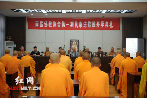 据悉,此次执事进修班是根据南岳佛教协会第五次会长扩大会议精神举办,第一期进修班招收学员二十八名,均来自南岳衡山各大寺院的执事(中层管理者),将在福严寺进行为期一个月的专业学习,进修班教务主任由大岳法师担任、教务长由宗显法师担任、监学由传法法师担任。进修班将邀请大和尚、专家教授就佛教史、寺庙管理、法律法规等进行系统讲解。