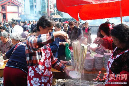 南京毗卢寺重阳节免费向老人供应长寿面