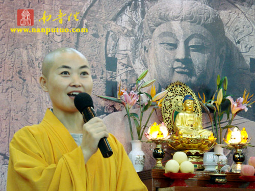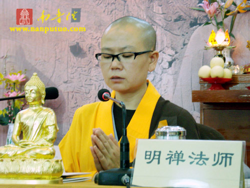 《法句经·老品》共十一个颂,是佛陀从不同的角度为弟子开示生命无常之理,教导弟子观身体的内外不净等种种的生命变化,以断除贪念以及妄想。明禅法师着重以观“贪嗔痴如火焰燃烧”为主题,以具体事例开示大众:三界无安,犹如火宅,外在的大火,只能破坏我们的身外之物,或者令身体受损;而内心的贪嗔痴等烦恼之火,不仅可令我们现在的身心不得安宁,而且也是我们将来招感痛苦果报,乃至生死轮回不得解脱之因,因此,我们一定要追求佛法的光明,打开智慧之门,断除烦恼习气,如此的生命才是最有质量,最有意义的。法师深入浅出的开示,使在座善信无不法喜充满,身心愉悦。