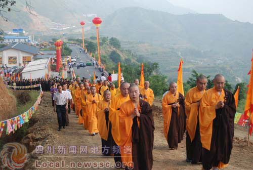 八方僧众、信众、嘉宾、游客缓步上山参加奠基仪式