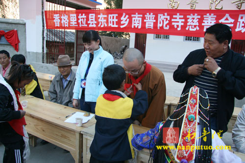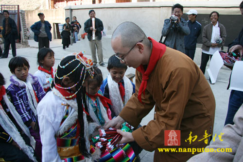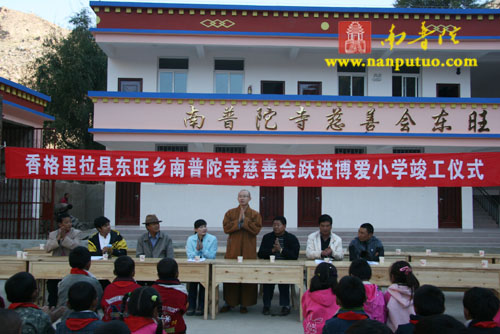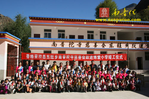东旺乡是云南省藏族同胞聚居的乡镇,南普陀寺慈善会博爱小学的教学楼,系我会今年三月援建的一个项目。此所小学始建于1913年,校舍年久失修,危及学生和教师的安全,我会为改善该校的办学条件,为了让藏族的孩子们更好的接受教育,向云南省红十字会捐款15万元用于新建教学楼。目前,教学楼已投入使用,看着整洁明亮的教室和孩子们天真、活泼的笑容,果妙法师们非常高兴,并来到教室,看望学生们,鼓励他们好好学习,健康成长,长大了为祖国、为社会做贡献。