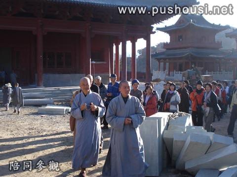 2008年10月18日下午,98年来寺传戒的羯摩阿闍黎,台湾传平法师帶領眾居士一行二十餘人來寺參觀,在客堂妙一師的陪同下參觀了大雄寶殿、念佛堂、法堂、藏經樓、五觀堂等處。另外,有兩位喇嘛師父籍此因緣一起參觀。