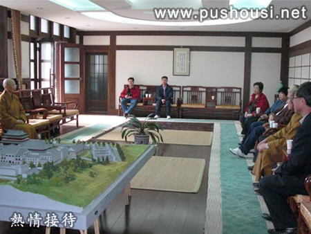 2008年10月14日中午,前全国政协民宗委主任牛茂森一行到山西五台山普寿寺参观,受到普寿寺住持如瑞法师的热情接待。宾主双方进行了亲切的会谈。