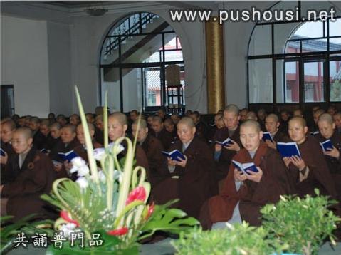 2008年10月17日,是观世音出家日。上午四众弟子齐聚在法堂,在师父的带领下,一起虔诚礼诵普门品三遍。旨在重温菩萨悲愍众生、随求而应、弘法利生的慈悲精神,以激励后学修道当精进,发大无畏心。法会因为几位小沙弥的到来更加。