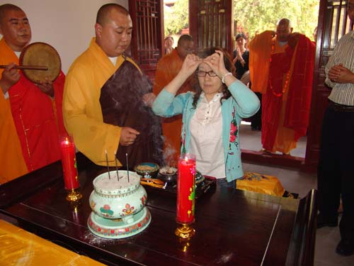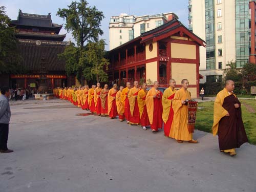 2008年10月5日下午,南京毗卢寺隆重举行水陆法会洒净熏坛仪式。毗卢寺方丈传义法师为此次洒净熏坛仪式主法,近百位法师参加了洒净熏坛仪式。