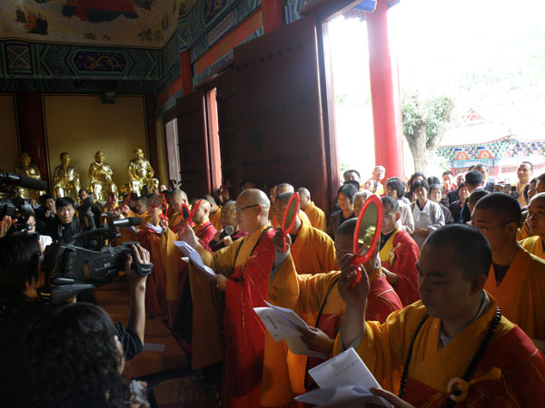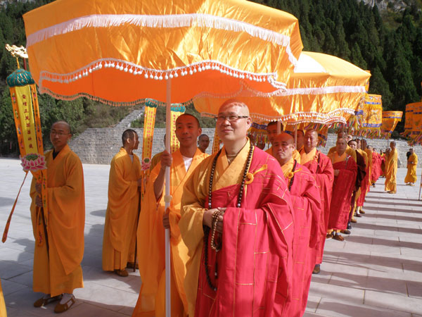 公元2008年10月11日,佛历二五五二年九月十三日,碧空如洗,风和日丽。山东省青州市泰和寺开光法会于9点30分正式开始。来自全国各大寺院的20多位主持为泰和寺主法开光。