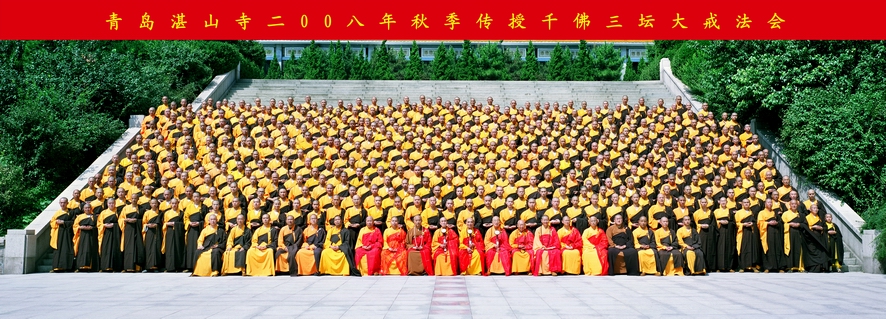 山东省青岛市湛山寺传授三坛大戒之集体合影,发放戒牒