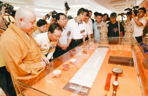 据介绍,从9月30日至10月20日举行的佛教文化节,由深圳市佛教协会、罗湖区佛教协会、深圳弘法寺慈善功德基金会、深圳弘法寺共同主办。其间将举行的活动除了当天在弘法寺举办的本焕长老血经真迹展和弘法之旅活动外,还将举行本焕长老百岁有贰寿庆(10月19日,弘法寺)、印顺大和尚晋院方丈升座(10月18日,弘法寺)、系列佛教及传统文化讲座(9月30日至10月20日,弘法寺、市民文化讲堂)、华兴寺开光(10月17日,东部华侨城华兴寺)、泰国四面佛赠送、开光(10月20日,东湖公园万佛禅寺)以及佛教音乐晚会(10月18日,东部华侨城大剧院)等佛教文化活动。届时,深圳佛教界还将组织“神州和乐”梵贝交响乐赴韩国首尔访问演出