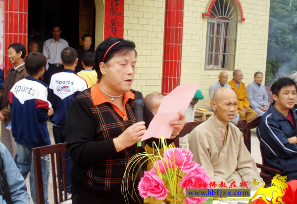 上午十时,典礼开始,首先由龙华寺住持果喜法师致欢迎辞,她说,龙华寺能有现在的规模,离不开党和政府的宗教好政策,离不开社会各界人士的鼎力相助,表示在今后,她将依持国泰民安的大好时光,更好地弘扬佛法,利乐众生。县民族宗教事务局刘恒喜副局长、县佛教协会秘书长法悟法师、县护法慈善功德会殷爱莲会长和陶港镇陶港村村委领导与会剪彩并表示祝贺。最后,由阳新县佛教正信威风锣鼓艺术团为典礼演出助兴。