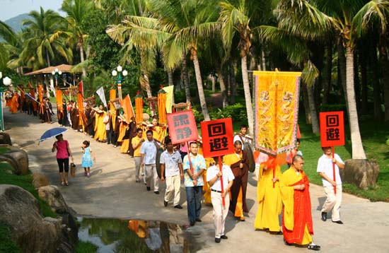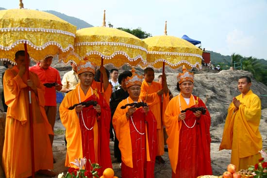 2008年10月17日(农历九月十九日),海南省三亚市南山寺冥阳两利水陆法会圆满送圣。此次法会由南山寺方丈新成法师主法,四众弟子千余人参加法会。