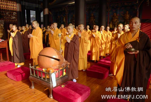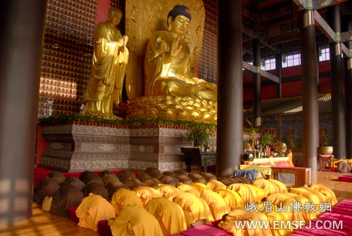 2008年10月17日(农历九月十九),恭逢观世音菩萨出家纪念日。从昨天到今天,峨眉山全山寺院僧众以拜忏、普佛、诵经、上供等多种法会形式恭祝这一佛教传统节日。