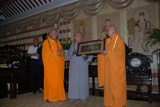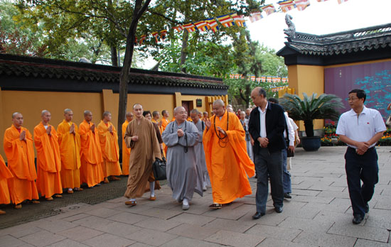 参加这次欢迎仪式的还有江苏省佛教协会会长明学法师、副会长普仁法师等以及苏州市民族宗教局杨崇华局长,季允钢副局长。