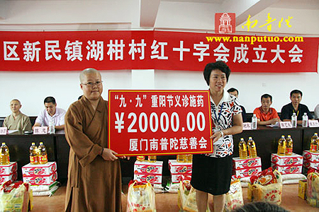 2008年10月7日,福建省厦门市南普陀寺慈善会德鸣法师,果瑞法师,显真法师,静仁法师受南普陀寺慈善会会长圣辉法师的委托,与义诊院的四位医生到该市同安区湖柑村进行了“重阳节”义诊施药活动,并向老人们捐赠了价值2万元的药品及米、食用油等生活用品。