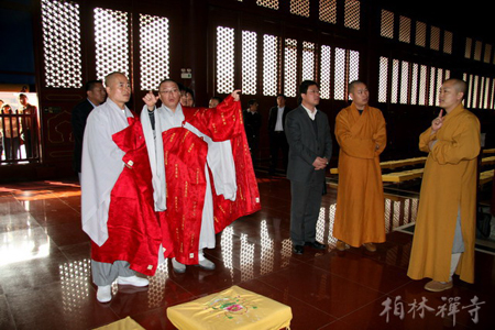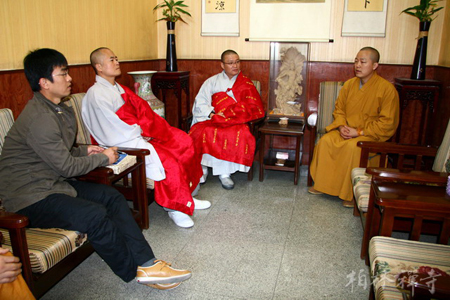 2008年10月30日上午,韩国佛教太古宗总务部长圆山法师和太古宗晓光法师一行,在国家宗教局一司副司长刘威、国家宗教局外联处处长弋扬、河北省宗教厅处长李泓、省佛教协会秘书长肖占军等人陪同下到河北赵县柏林禅寺参观考察,受到方丈明海法师和知客利生法师的热情接待。