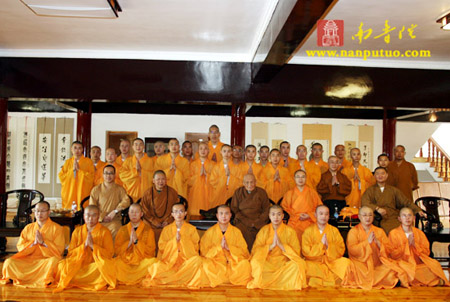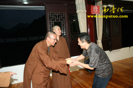 2008年10月17日傍晚5时,福建省厦门市佛教协会会长、南普陀寺方丈则悟法师,厦门市民宗局蔡永华副局长、黄镇辉处长、南普陀实业社曾全民主任等一行十余人在了法法师陪同下,赴雁荡山拜见梦参长老,美国旧金山法雨精舍住持宏觉法师接待则悟法师一行。