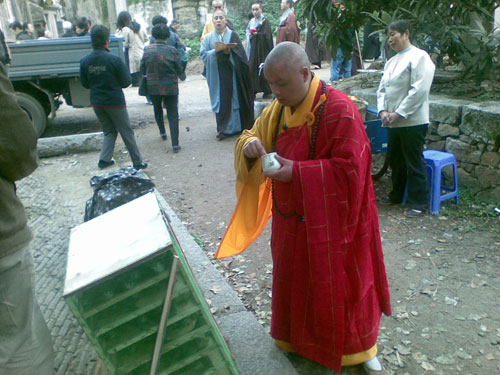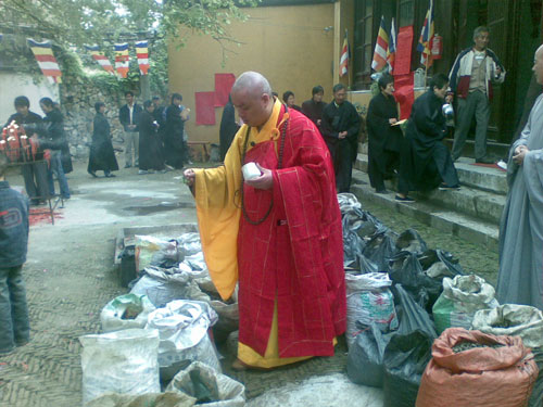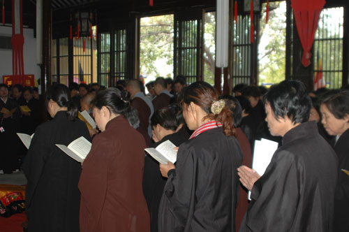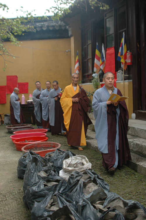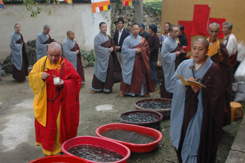 此次活动礼请苏州报国寺、灵源寺的法师共同为现场的鱼、贝、螺类等水族及数千只麻雀皈依说法、洒净加持。苏州本地及周边计三百余信众随喜参加了此次法会。