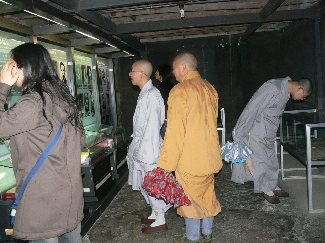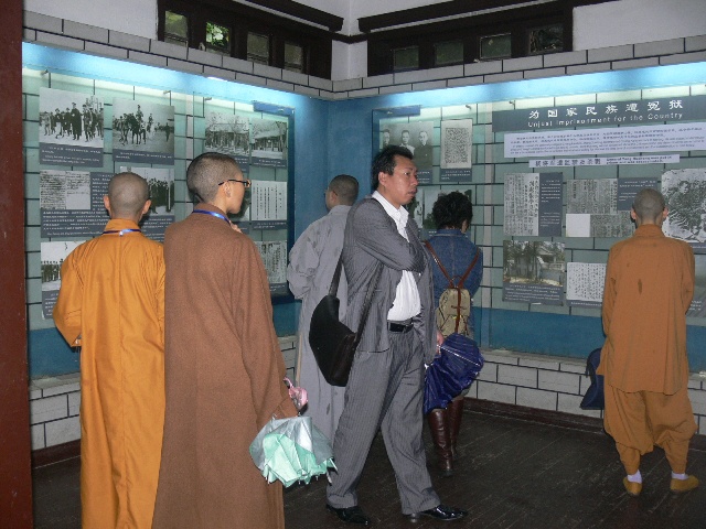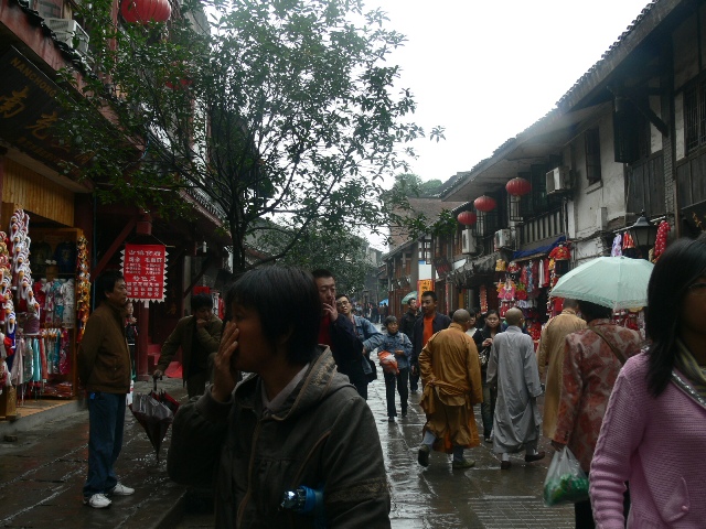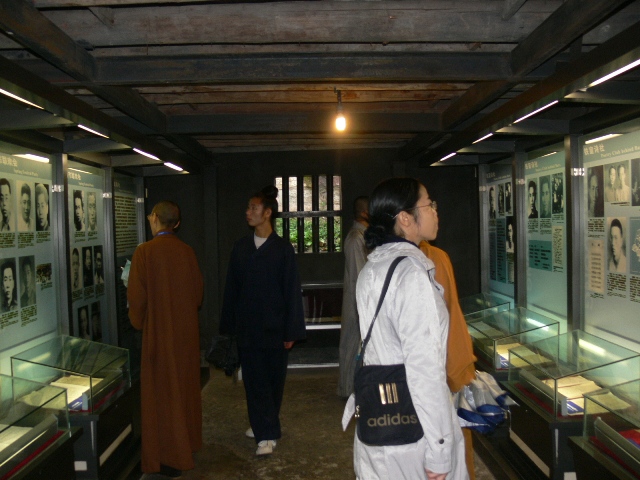 早上8点30分,车就从华岩寺出发了,首先来到的是具有革命历史意义的白公馆(又称香山别墅)和渣滓洞,在革命时期这里都是用来囚禁政治犯的地方,江姐、李青林、“小萝卜头”等革命烈士的可歌可泣、英勇悲壮的英雄事迹便发生在这里。参观完白公馆、渣滓洞,随即又来到千年古镇磁器口,自明、清时期以来磁器口古镇名扬巴蜀大地,以出产瓷器而得名,但是现在这里已不生产瓷器了,目前以饮食、艺术品为主。随即队伍又参观了南山上的老君洞(道观)、嘉陵江与长江的交汇处——朝天门、重庆市最繁华的市中心——解放碑、最具有重庆标志性意义的人民大礼堂等地。学员们看得都是目不暇接。