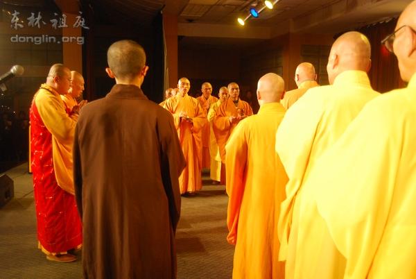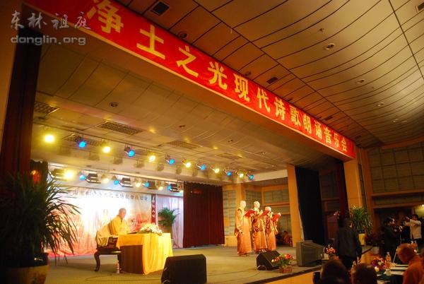 由秦皇岛佛教协会主办,昌黎水岩寺承办,庐山东林寺演出的“净土之光”现代诗歌朗诵音乐会,于11月22日在秦皇岛市最大的会场——国贸饭店国际会议中心举行。 演出的前夕,“净土之光”的主创人员集体“落发”,他们为了演出剃光了头发的行为,在秦皇岛佛教徒中不胫而走,一时传为佳话。东林寺代主持大安法师在演出前对他们进行了开示,要求朗诵者和歌手做到人诗合一,身心皆忘的境界,力争把“净土之光”打造出一台神品的节目。“净土之光”主创人员悟在 当下,决心从头开始,从形象开始,集体落发。这次落发的有三位江西朗诵名家,邹卫,史建春,程先顺;歌手张浦,作者谢轮。他们都表示,为了传播弥陀的愿力,剃掉自己的烦恼丝是值得的。 据了解,《净土之光》演出两年,在两年的时间内,有两位朗诵者,两位歌手,一位编舞指导皈依了佛教。 “佛教导航”佛音大家唱的米米居士主持了“净土之光”,东林寺监院道元法师进行了愿文朗诵。演出现场,观众激情点燃,掌声阵阵。秦皇岛市的居士,在王培菊老师的指导下 ,还编排了舞蹈,穿插在演出的过程中。为了方便大家的阅读,主办单位还把“净土之光”印成了精美的小册子,分发到每一位观众。 在“净土之光”结束后,秦皇岛全场居士为了表达感恩的心情,一同用诚挚的心来演唱《感恩的心》。这曲用心演绎的《感恩的心》把现场的气氛重新推向一个高潮。 音乐会现场 欢喜 存海法师代表秦皇岛佛教协会向大安法师赠送绿如意 大安法师和存海法师一同拈香 晚会演出人员合影 在场的义工、演出居士和师父们合影 |