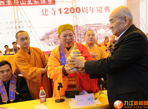 中国佛教协会会长一诚大师参加江西云居山真如禅寺建寺1200周年庆典。