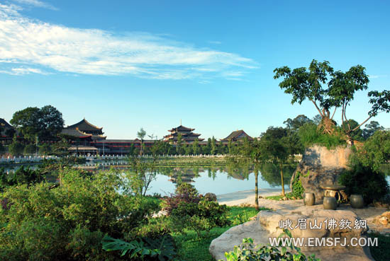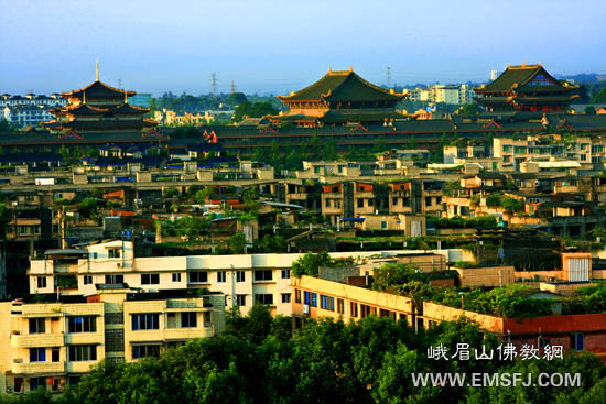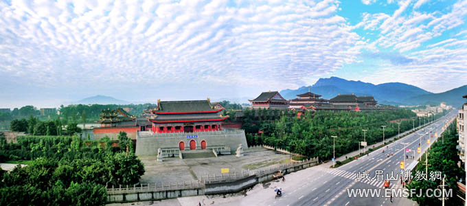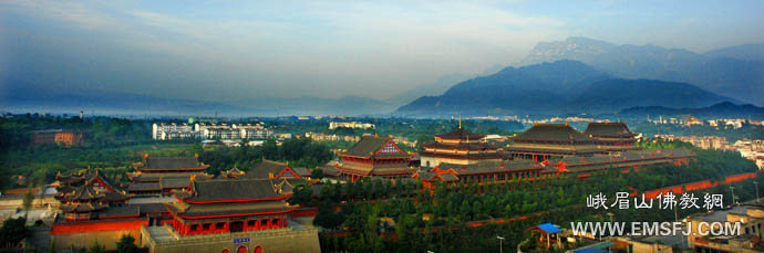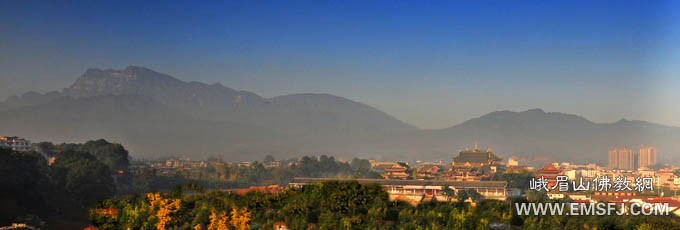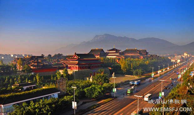 评语:清晨,阳光洒向峨眉大地,峨眉山十方丛林寺院——大佛禅院巍然屹立于秀美的峨眉山与峨眉城之间,气势恢宏、雄伟壮丽、错落有致,与远处的峨眉山金顶遥相呼应,体现出了峨眉山市政府“山城一体”的建设理念,更体现出佛教文化的博大精深和人间佛教的无穷魅力。