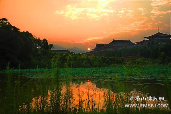 作者:中国电视艺术家协会会员、四川省电视艺术家协会常务理事 林立 评语:夕阳西下,彩霞满天,妙觉莲池水天一色,映衬出禅院雄伟的殿堂,将莲池和庙宇定格在五彩的蓝天之下,突出了禅院的神圣与静谧。