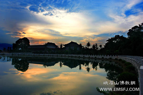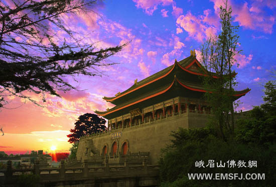 评语:俯视大佛禅院全景,秀丽的峨眉仙山与辉煌的大佛禅院融为一体,展示了大佛禅院的雄伟庄严和仙山峨眉的秀丽妩媚。该图构图完美,用光考究,色彩丰富,实为佳作。