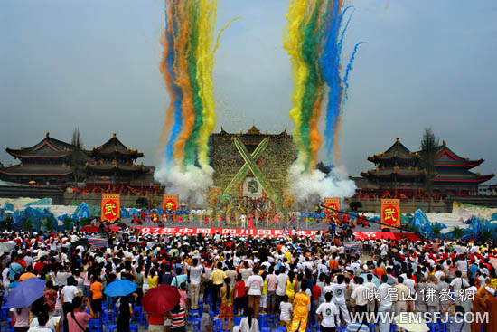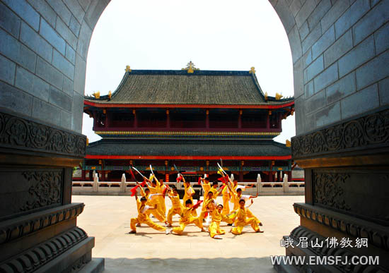 作者:中国电视艺术家协会会员、四川省电视艺术家协会常务理事 林立 评语:该图以大佛禅院为背景,以中国•四川国际峨眉武术节开幕式文艺演出为内容,突出“武”字,展示峨眉山武术源于峨眉山深厚的文化内涵,对宣传峨眉山,宣传峨眉武术,宣传峨眉山佛教文化起到了积极的作用。