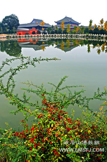 作者:中国摄影家协会会员、峨眉山摄影家协会副主席 林萌 评语:一枝弯绿,一簇红果,一池秋水,加上对岸的殿宇庄严,衬托出禅院的静谧与祥和。该图构图简洁,色彩明快,视觉新颖,别具一格。