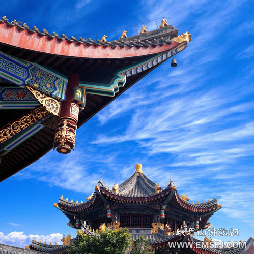 作者:中国艺术摄影学会会员、峨眉山市摄影家协会会员 汪志平 评语:在蓝天白云的衬托之下,梵宇楼角更显美丽壮观,丰富的色彩表现,楼与角之间的对比,给人以强烈的视觉冲击,为古建筑摄影之佳作。