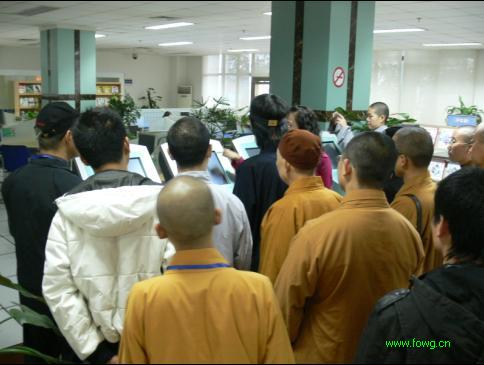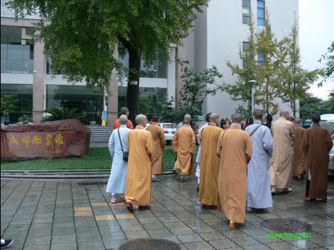 中国佛网讯 2008年11月5日10点,佛教图书馆管理培训班在进行完结业测试以后,成都文殊院方丈宗性大和尚慈悲,特别委托由杨因教授带队前往成都市图书馆、金沙遗址博物馆参观学习。