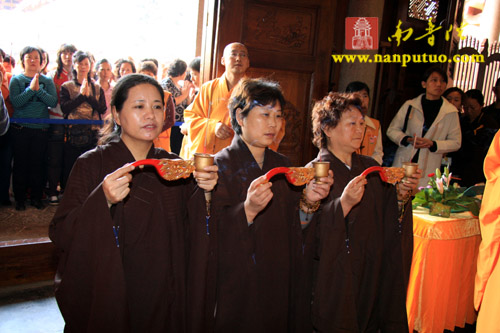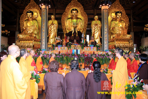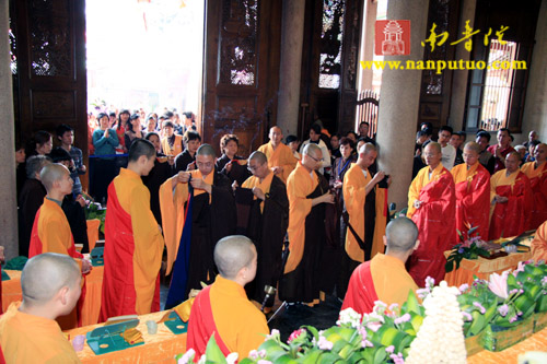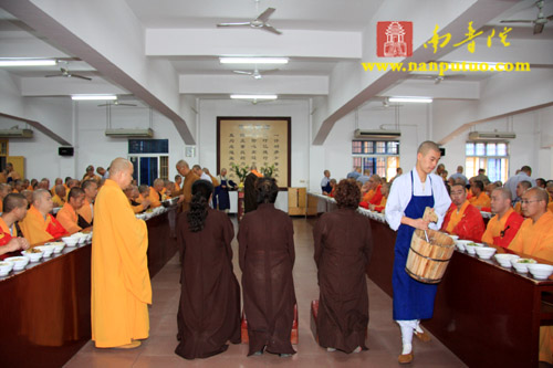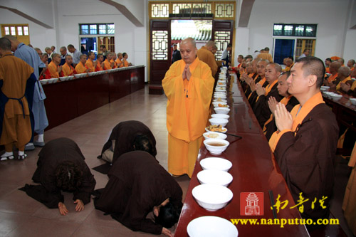11月12日上午,南普陀寺冥阳普利法会首日奉供上堂,由北京市崇文区朱汉光合家、施国光合家、翁克乐合家、郑银奶、黄彩微、高意各斋主敬设上堂斋襯一筵于五观堂供佛及僧。
