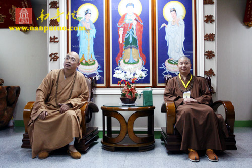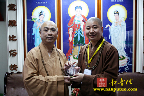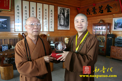 嘉义佛教会理事长福定法师与团长互赠礼品
