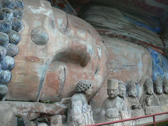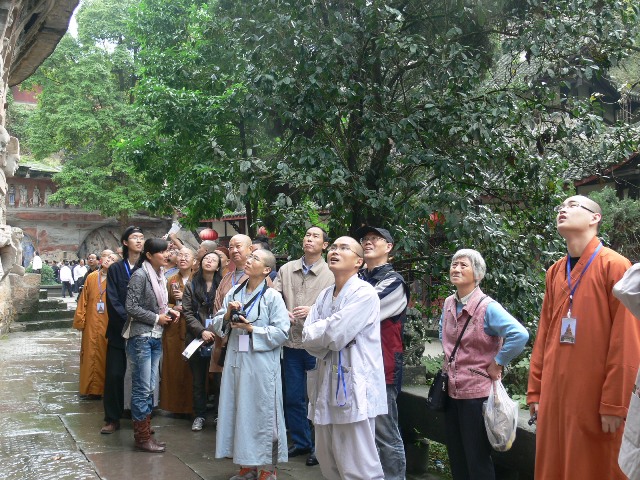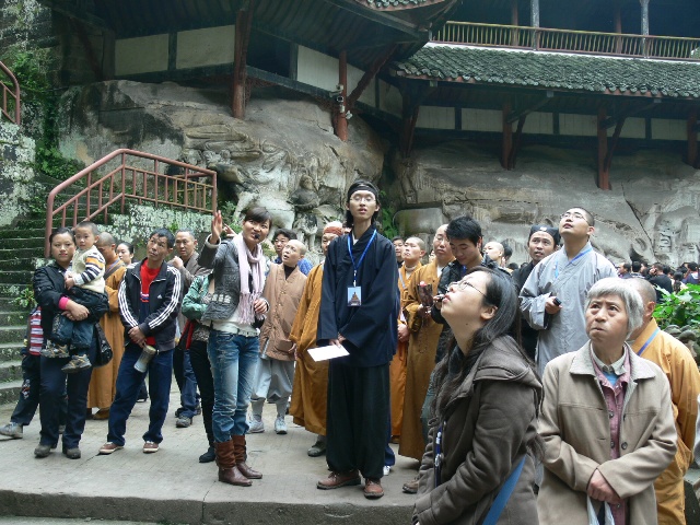 在前往成都文殊院的途中,朗光法师带领学员们参观了有名的全国重点文物保护单位——大足石刻,大足石刻涵盖社会思想博大,把佛教的基本教义与中国儒学的伦理,理学的心性以及道教的学说融为一体,博采兼收,具有极大的社会鉴戒作用,显示了中国宋代佛学思想的特征。学员们从中学习到了中国古代的宗教教义、伦理,收益非常大。随即又来到四川省内江圣水寺,圣水寺建于唐朝鼎盛时期,至今仍保留有很多唐朝时期的佛像(如千手观音)。因时间仓促,没有逐一参观每个殿堂。