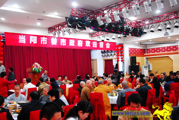 佛像开当阳市委、市政府举行欢迎宴招待前来参加玉泉寺光暨宽祥法师升座的诸山长老和各界来宾