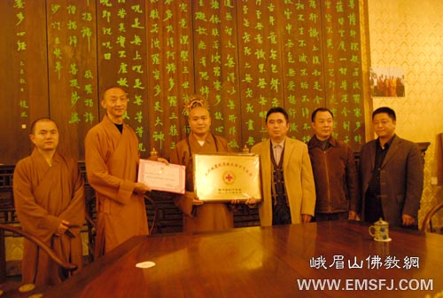 四川省红十字会向峨眉山佛协颁发“抗震救灾特别贡献奖”